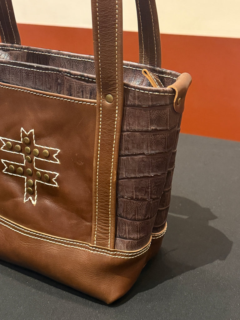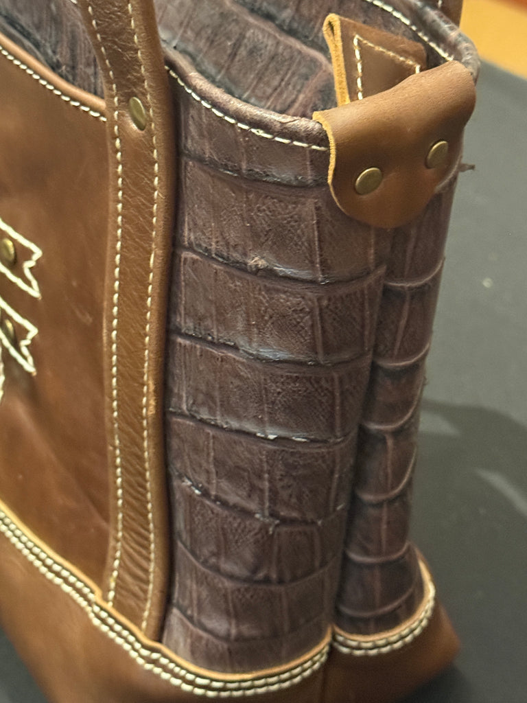 Crafted from premium Horween leather and paired with an embossed alligator leather accent, this tote showcases a rich texture and elevated look. Finished with high-quality YKK zippers, it’s built to stand up to daily wear while aging beautifully over time.