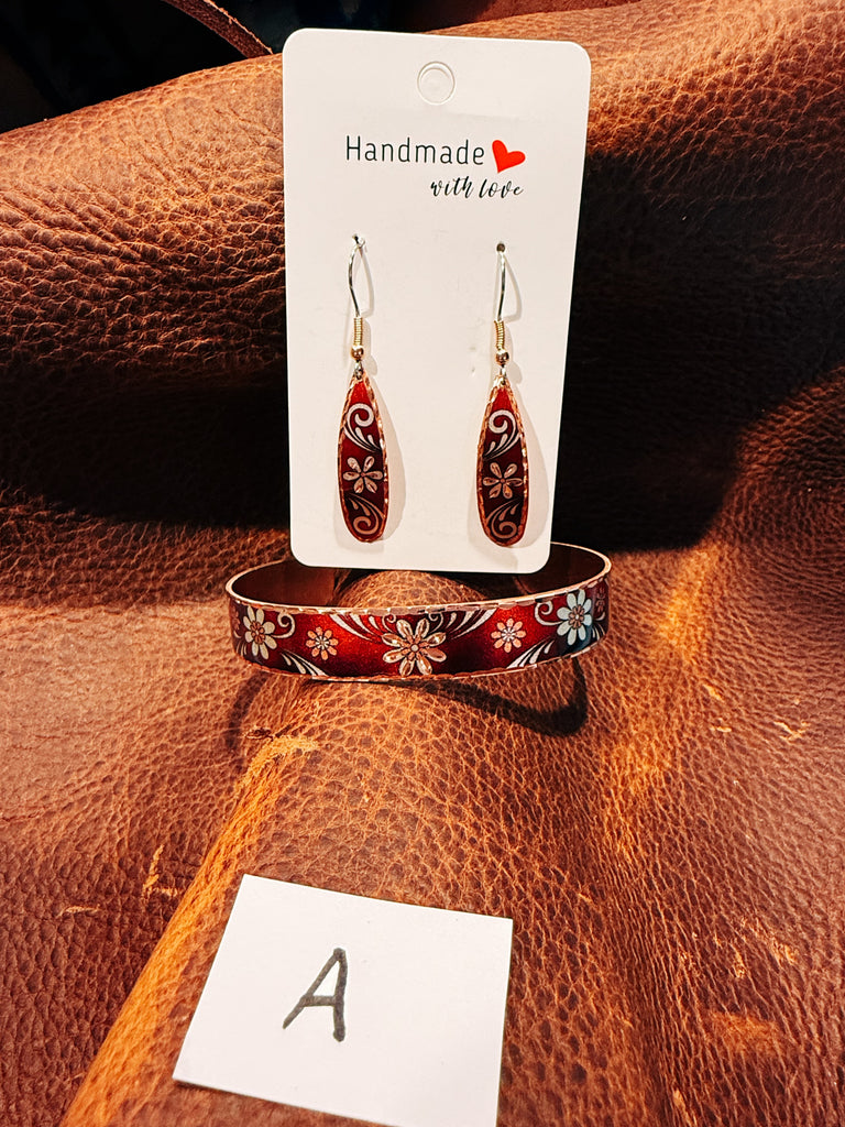 Beautifully created from 99% pure copper, hand faceted to capture the light, lacquer finished to help keep from tarnishing…this jewelry will sure stand out from the rest. Hypoallergenic surgical steel earring hooks make these perfect for anyone! The earrings are extremely lightweight so you can wear them comfortably all day. To adjust the bracelet simply use the warmth of your hands and gently work cuff to a perfect fit.